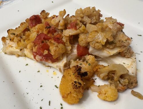 Verdesca al forno con cavolfiori e pomodori
