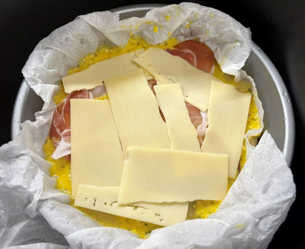 Mettete in superficie le fettine di prosciutto e formaggio.