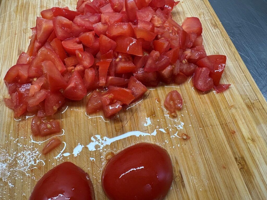 Lavate i pomodori e tagliateli a dadini piccoli.
