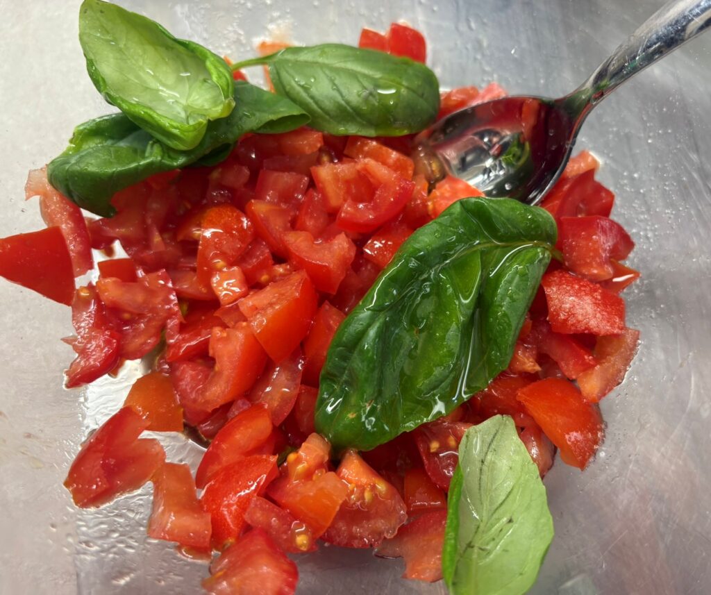 Metteteli in una ciotola e conditeli con olio, sale ,pepe e qualche foglia di basilico.