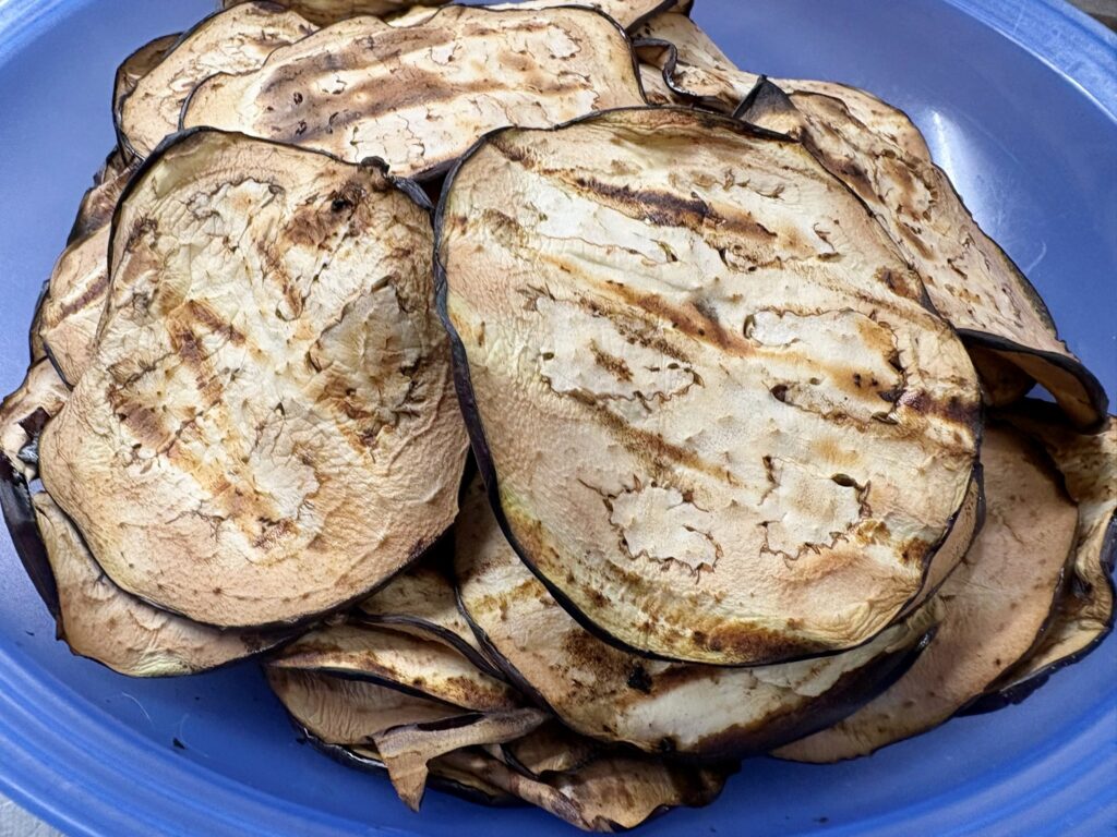Affettate sottilmente le melanzane e passatele alla griglia alcuni minuti per lato.