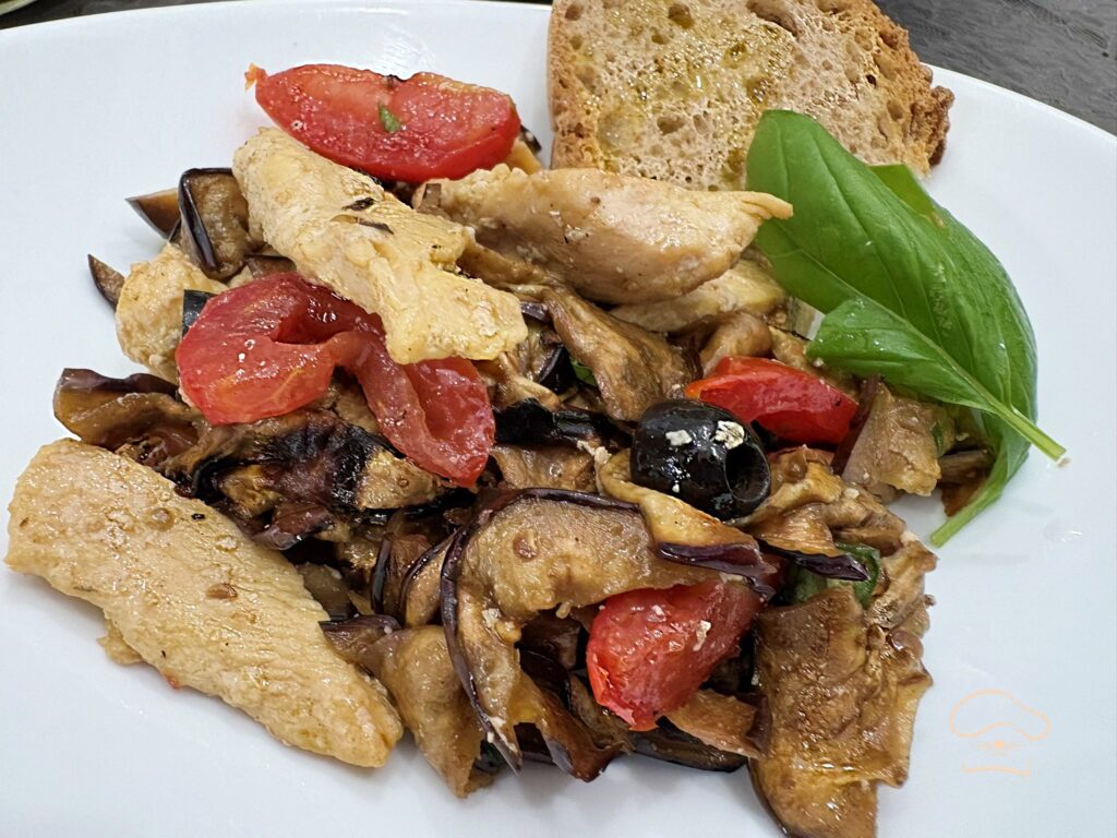 Unite anche il petto di pollo e fate aromatizzare almeno un’oretta prima di servire accompagnato da un fettina di pane tostato.