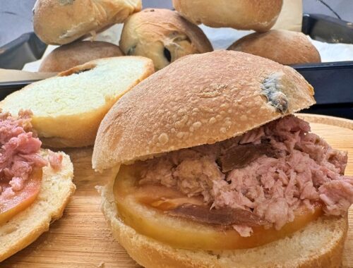 Bruschette con lardo , castagne e miele
