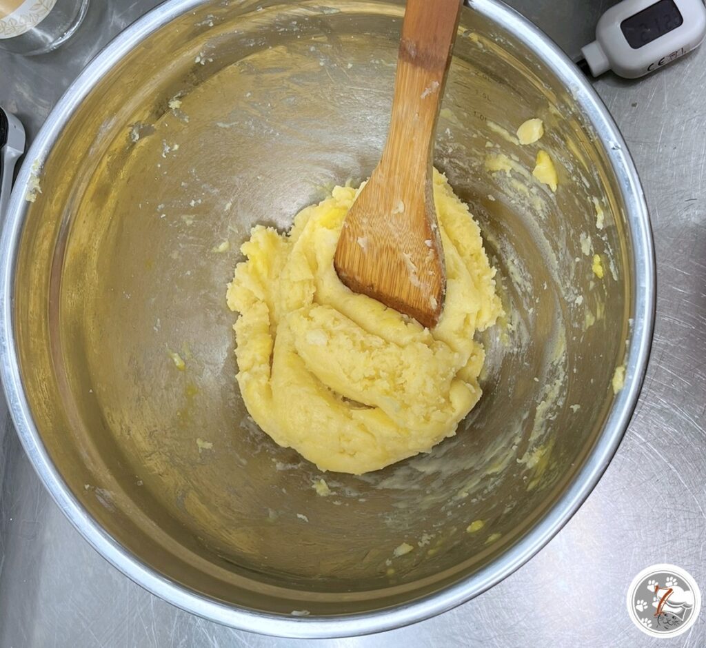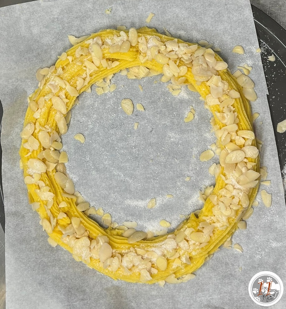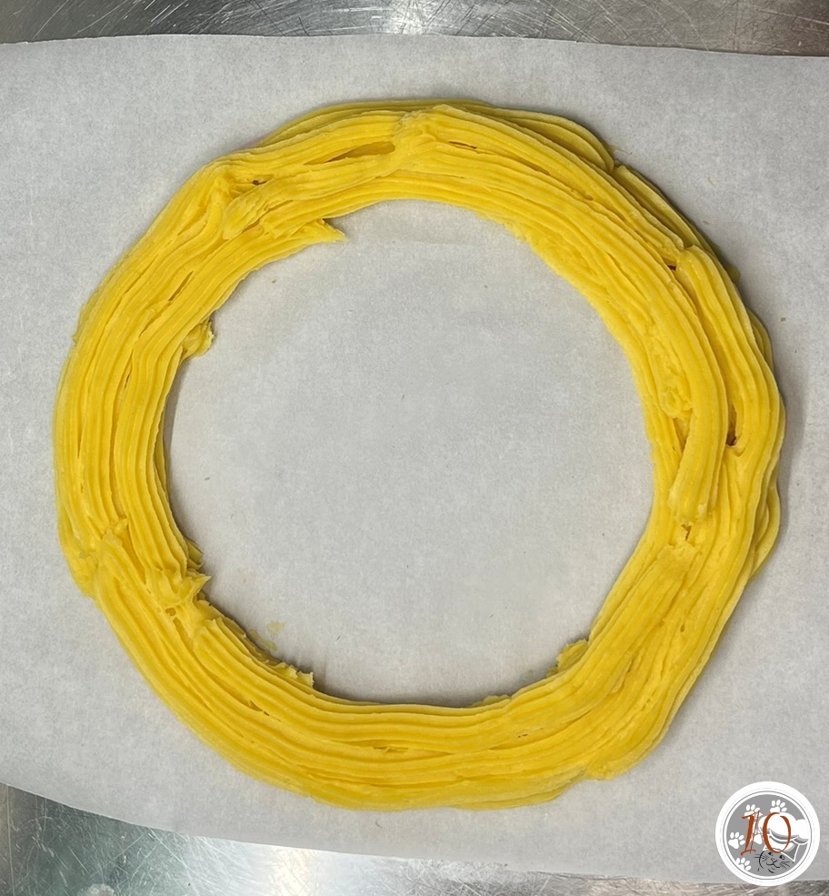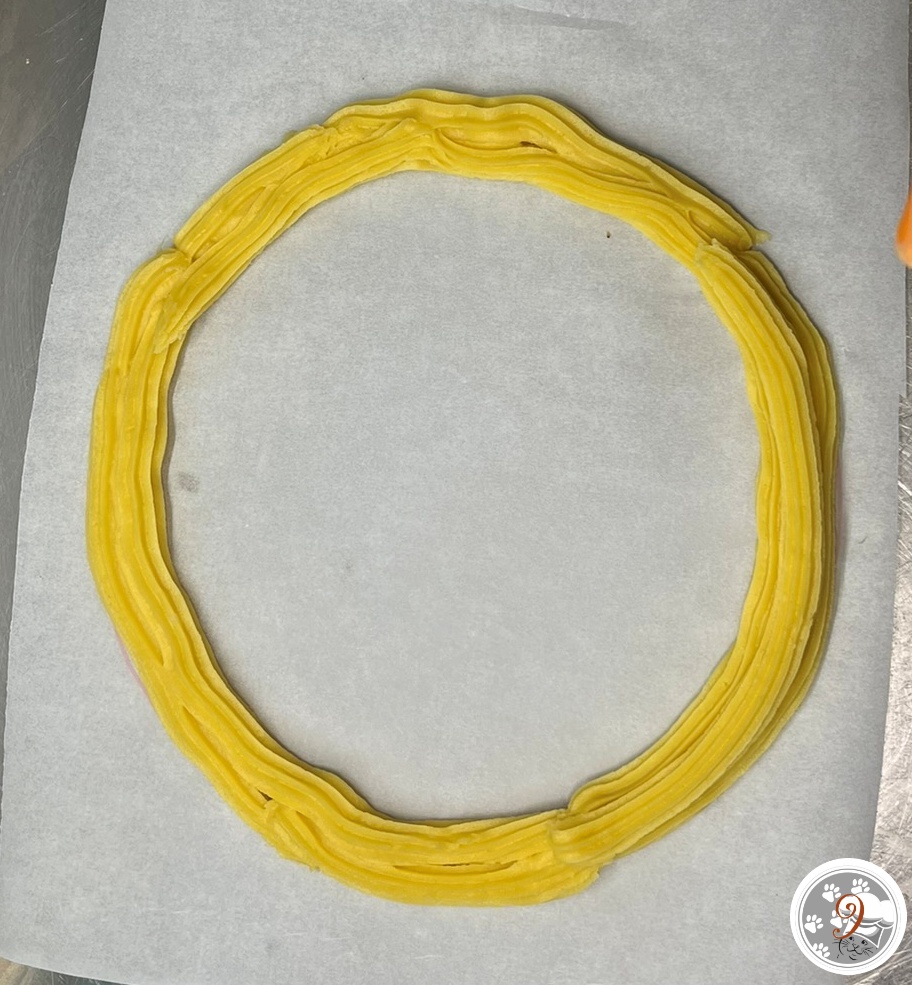 Mettete il composto in una sac à poche munita di bocchetta a stella e fate un cerchio con l’impasto.