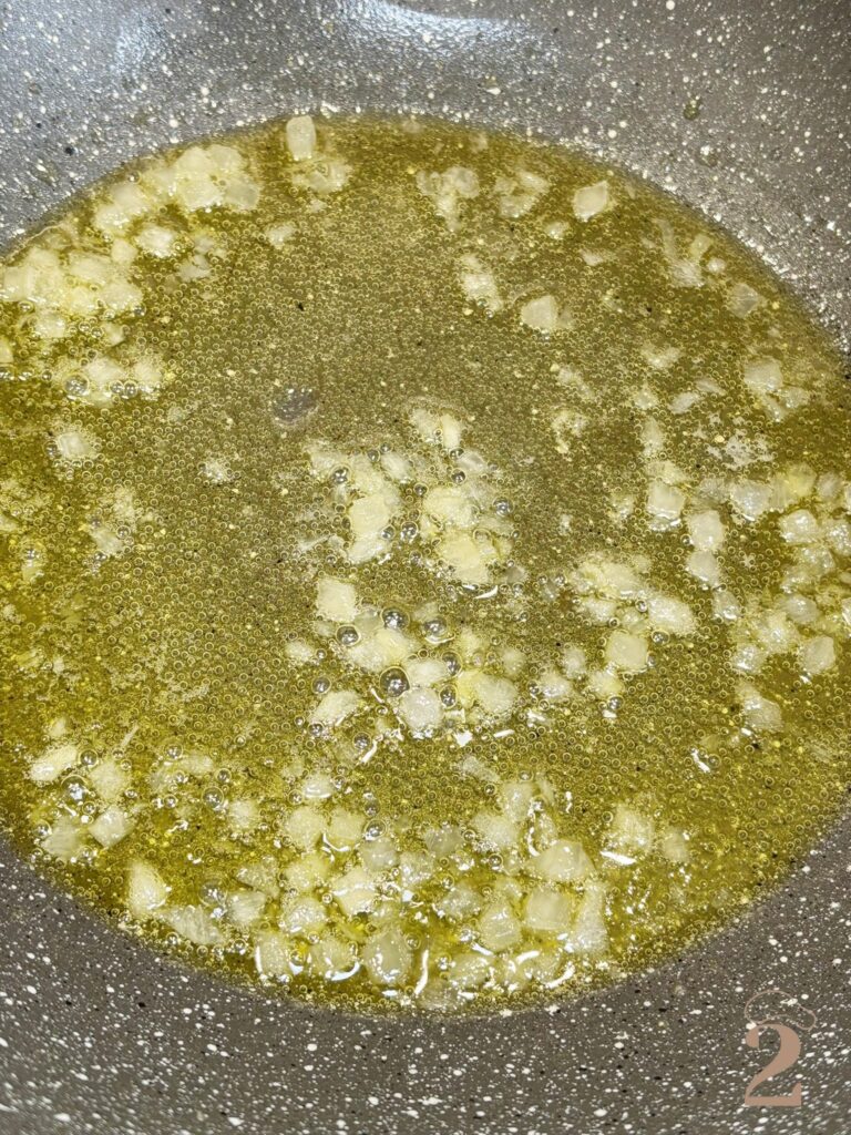 Tritale la cipolla e fatela dorare in 3 cucchiai di olio e una noce di burro per 5 minuti.