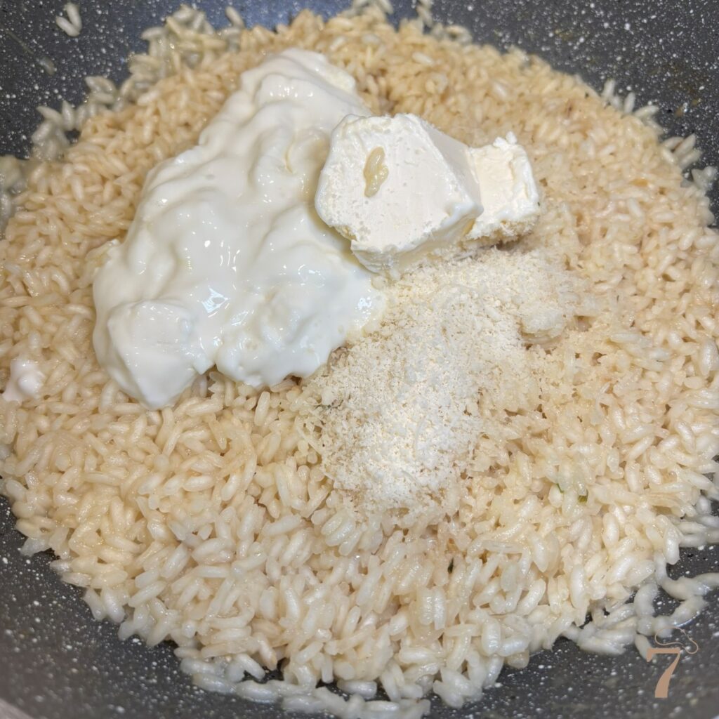 Aggiungete lo stracchino, il parmigiano e aggiustate di sale e pepe.