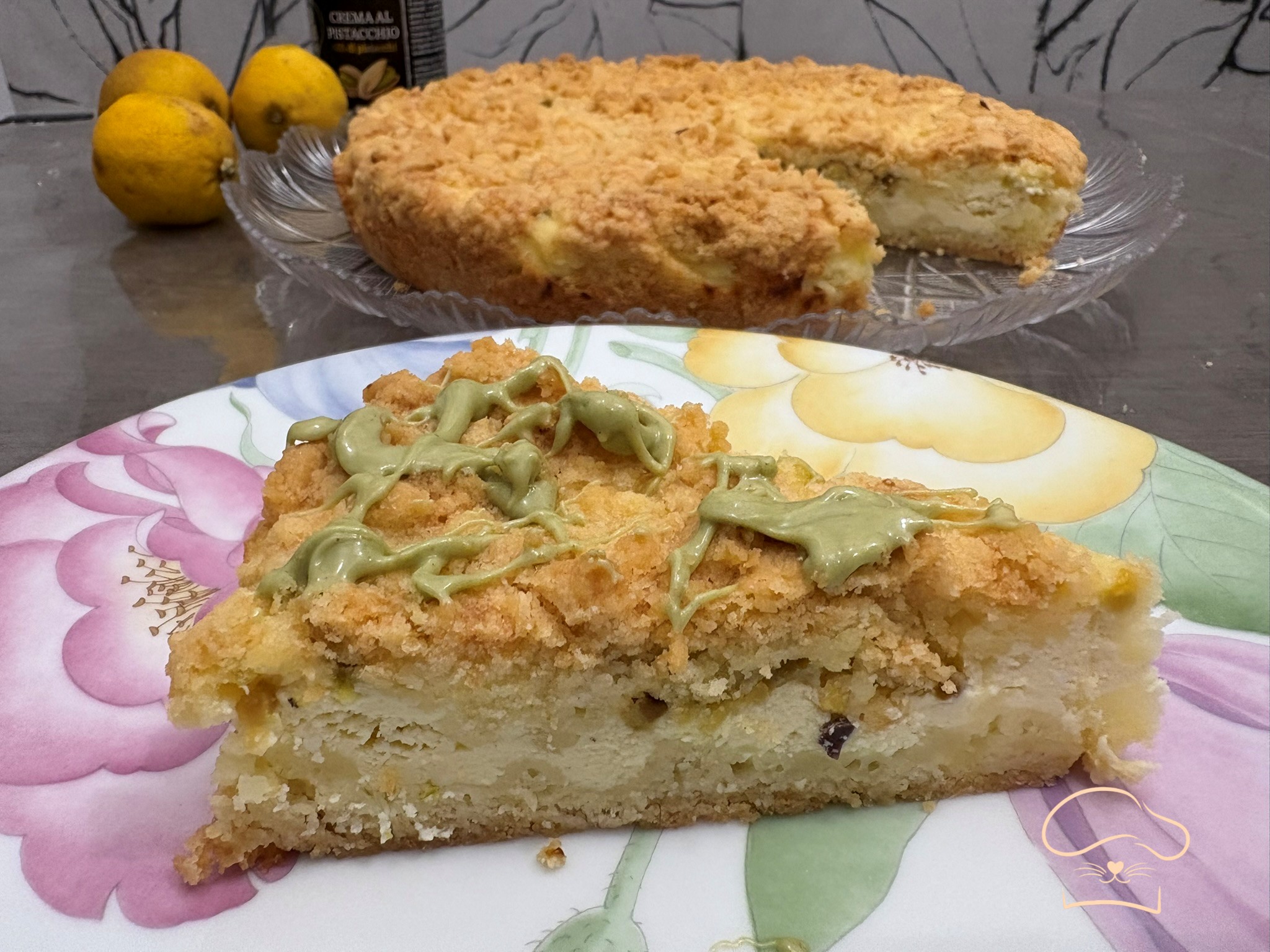Sbrisolona di limone , ricotta e pistacchi