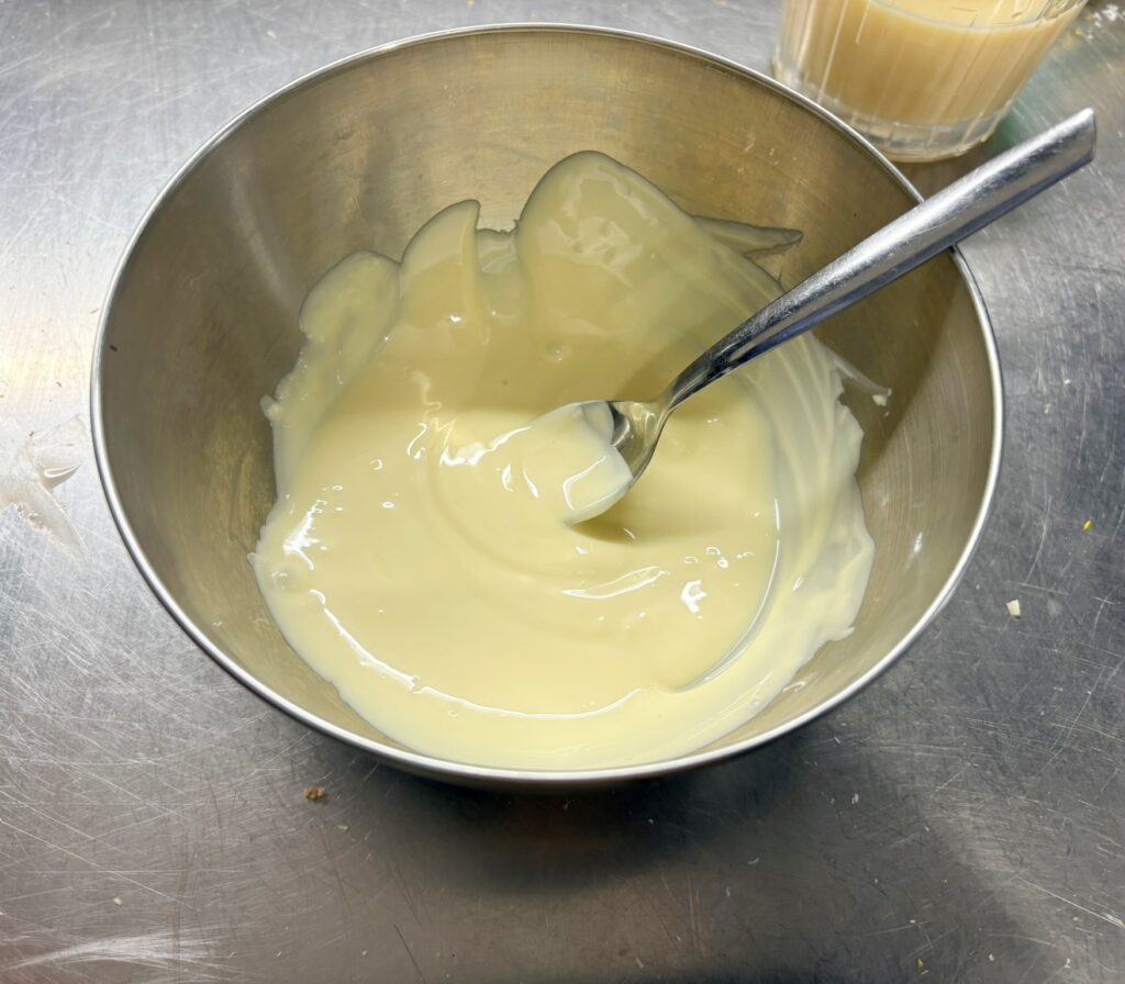 Aggiungete anche il latte condensato e mescolate bene fino ad ottenere un composto omogeneo.