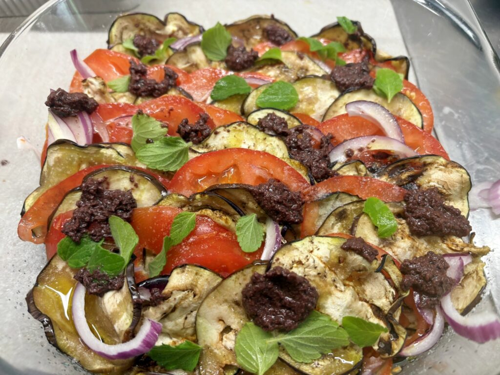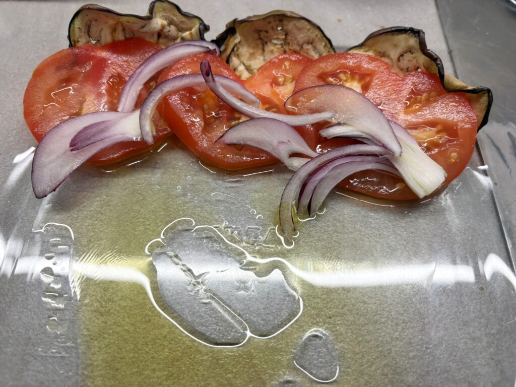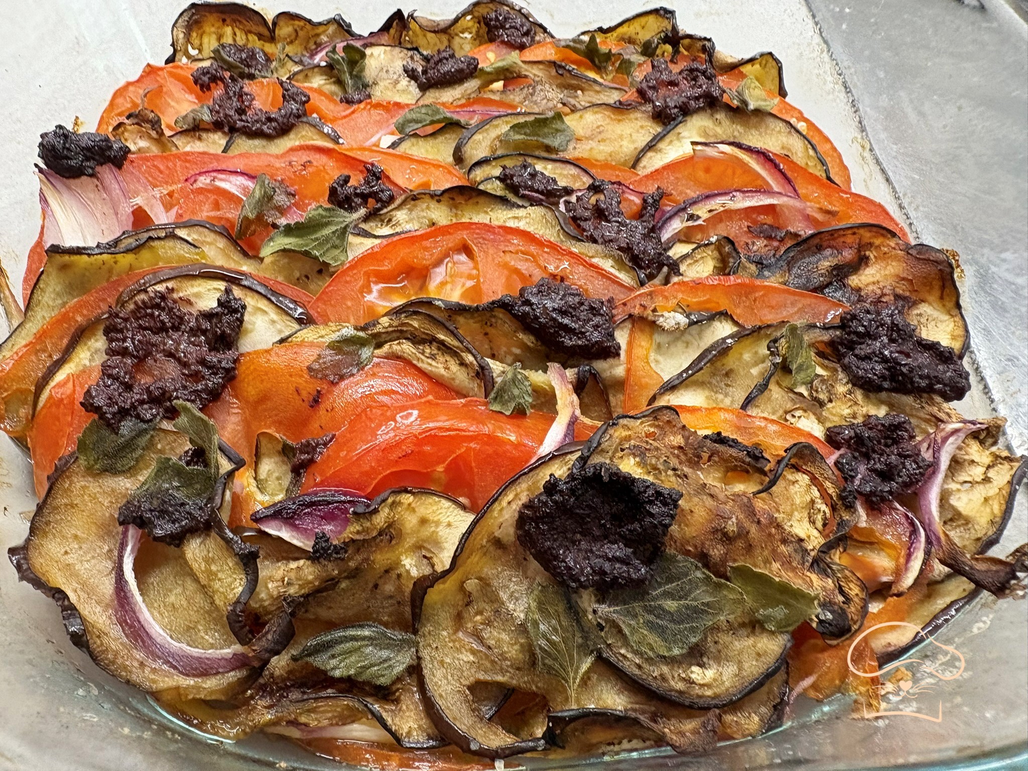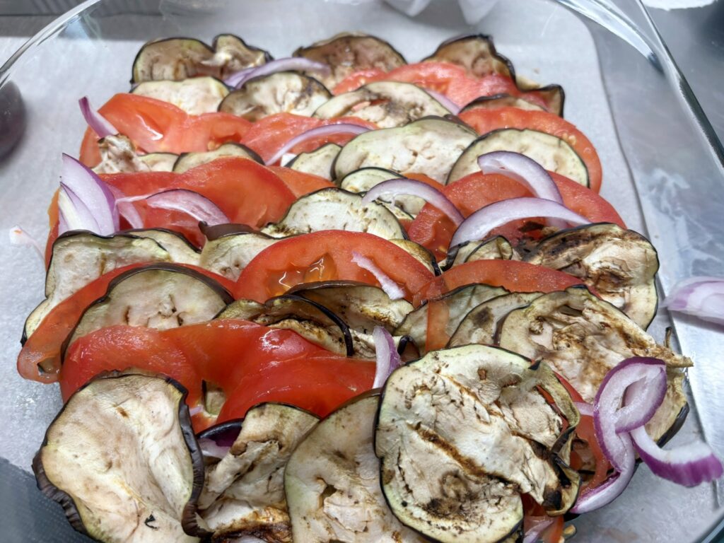 Teglia di melanzane, pomodori e cipolla
