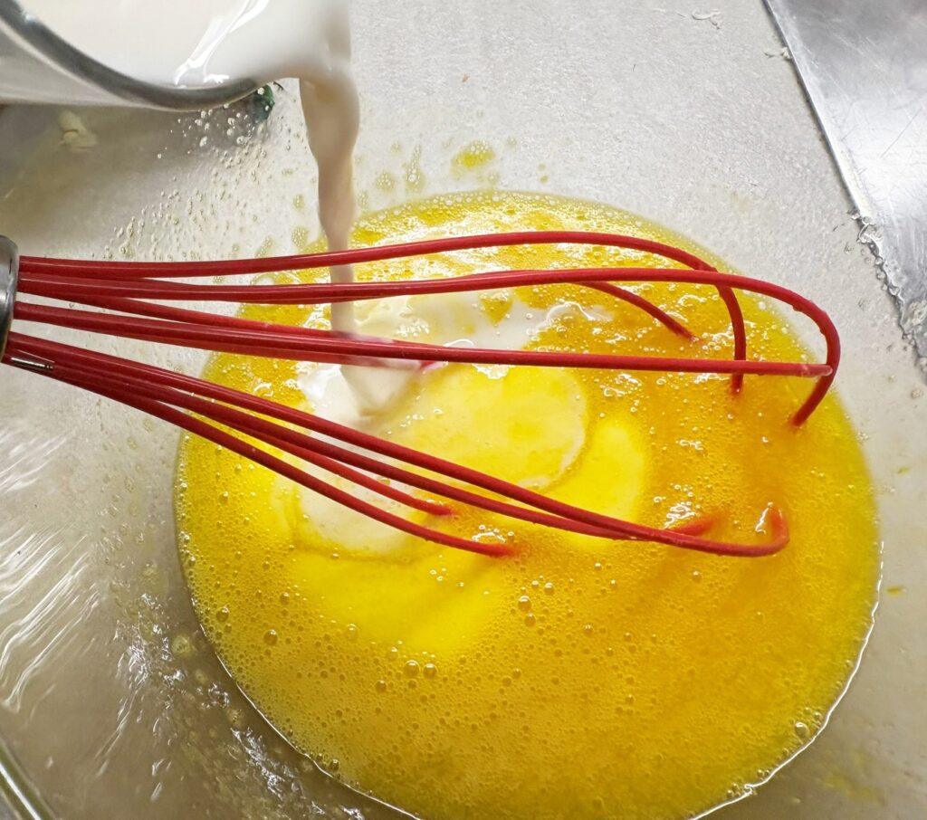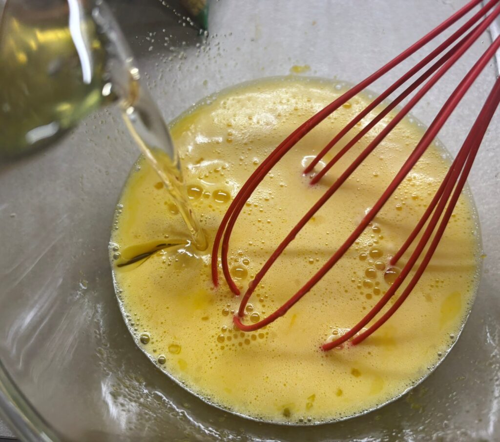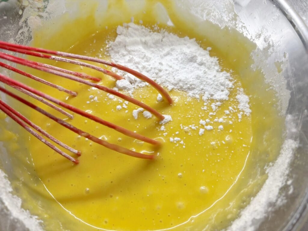 In una ciotola capiente sbattete le uova con lo zucchero.