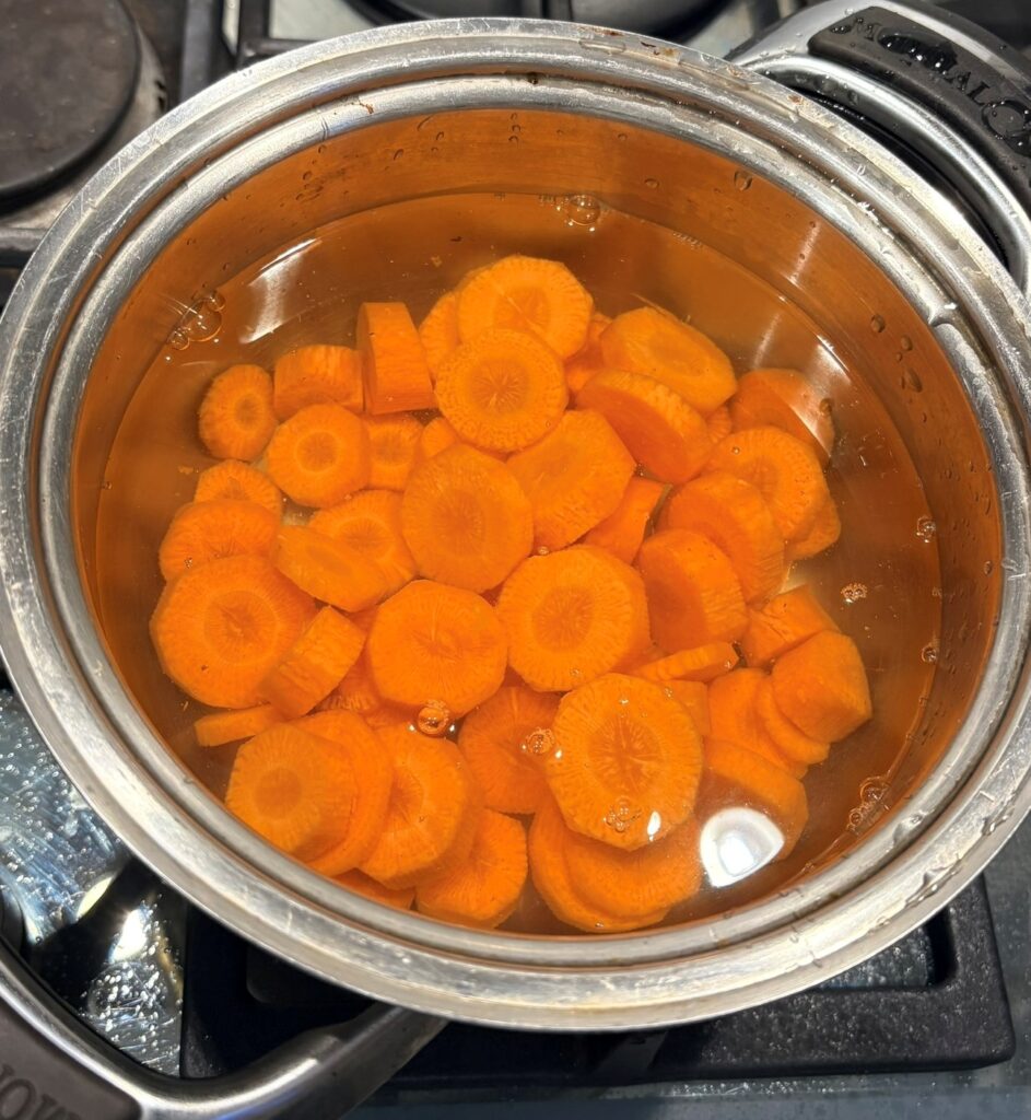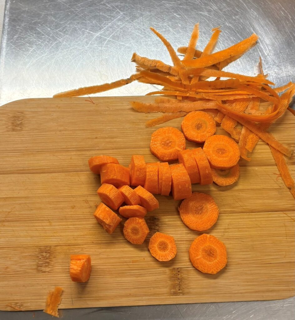 Pelate le carote e tagliatele a pezzettini.