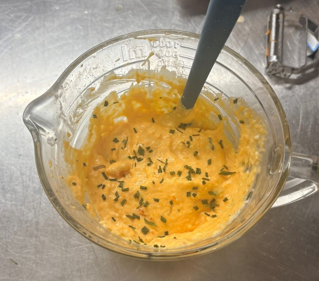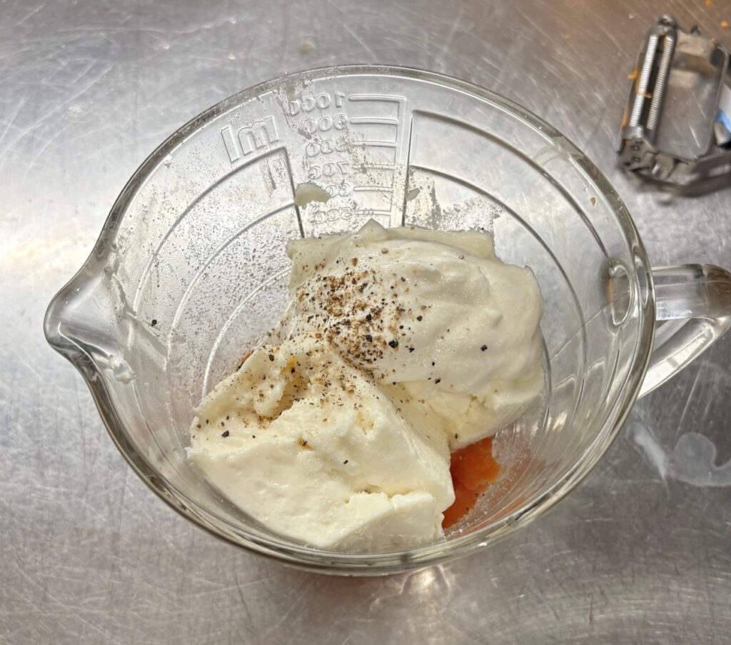 Unite la purea di carote e stracchino e mescolate bene.