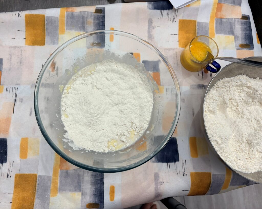 Sbattete l’uovo, aggiungetene la meta’ e continuate ad impastare con la farina, fino ad avere un composto morbido e compatto.