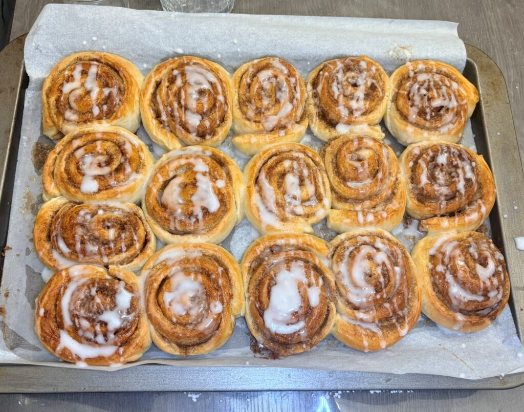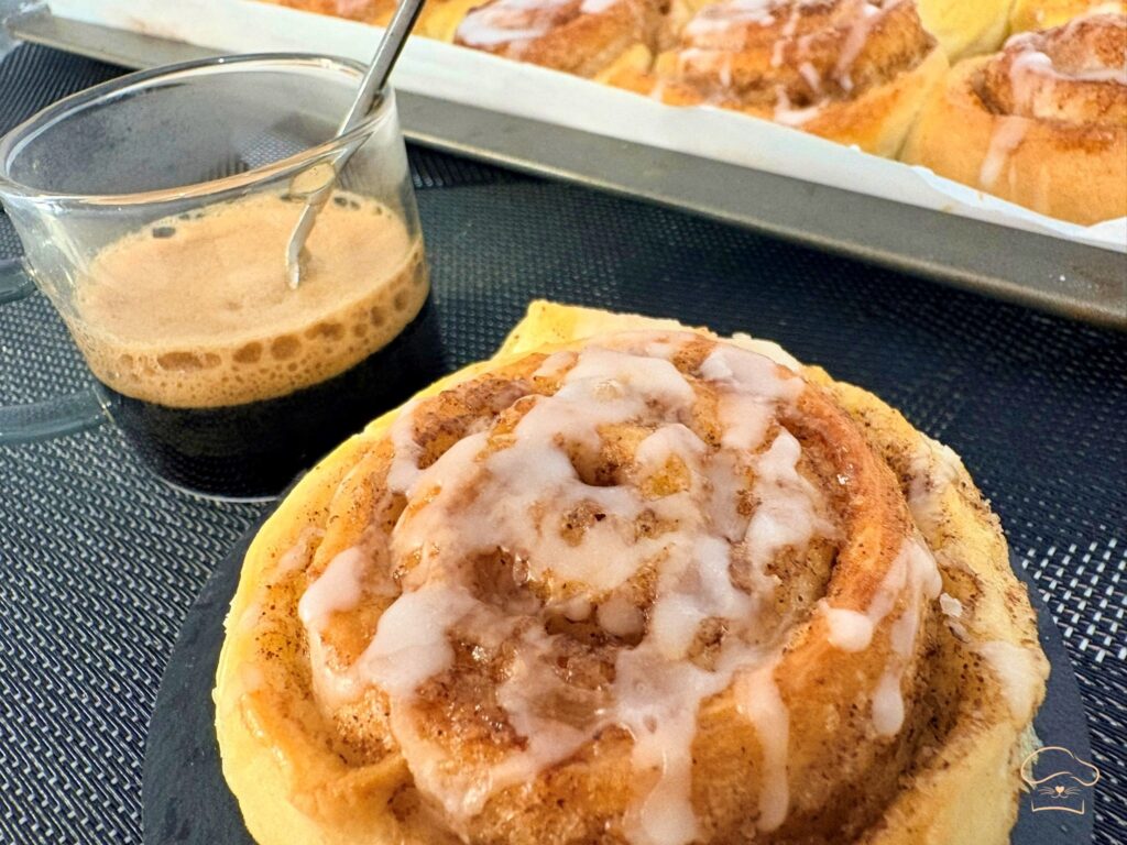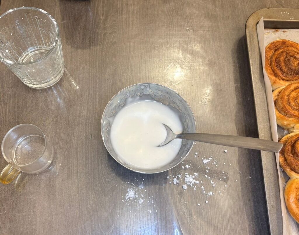 Preparate la glassa mescolando lo zucchero a velo con l’acqua e spalmate o versatela sui cinnamon rolls ancora tiepidi, in modo che si sciolga leggermente.