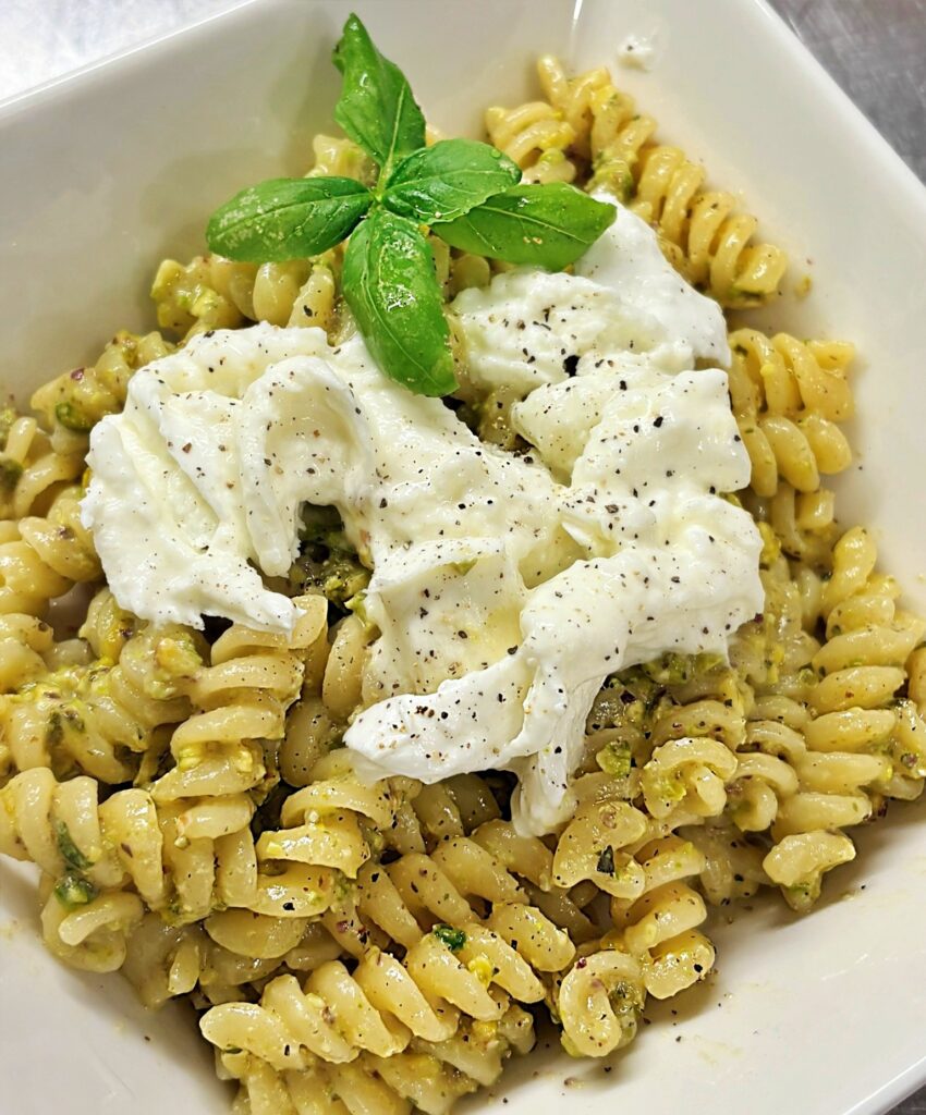 Fusilli cremosi ai pistacchi e mozzarella di bufala