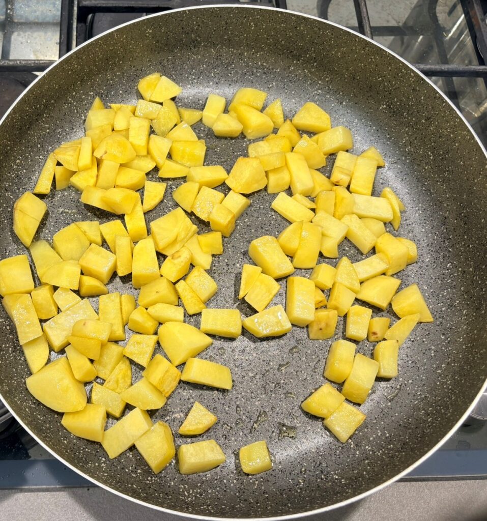 Aggiungete le patate a tocchetti e cuocete per 20 minuti o fino a quando sono tenere.