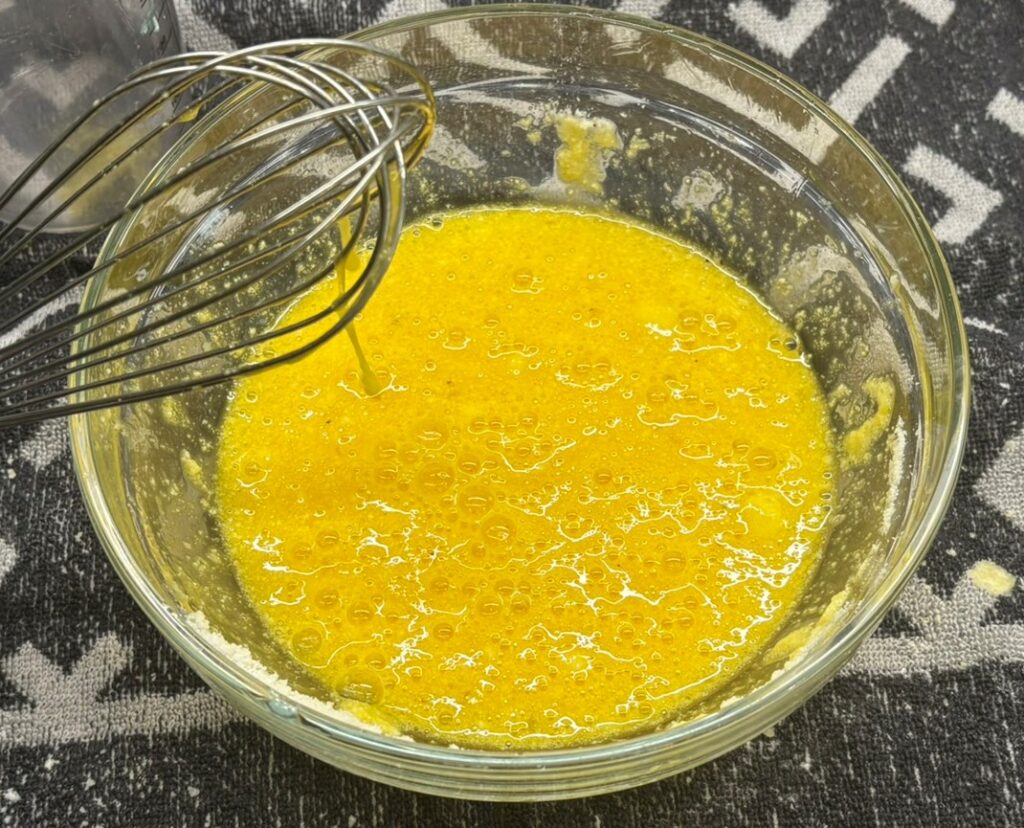 Unite il lievito , mescolate e aggiungete le uova leggermente sbattute.