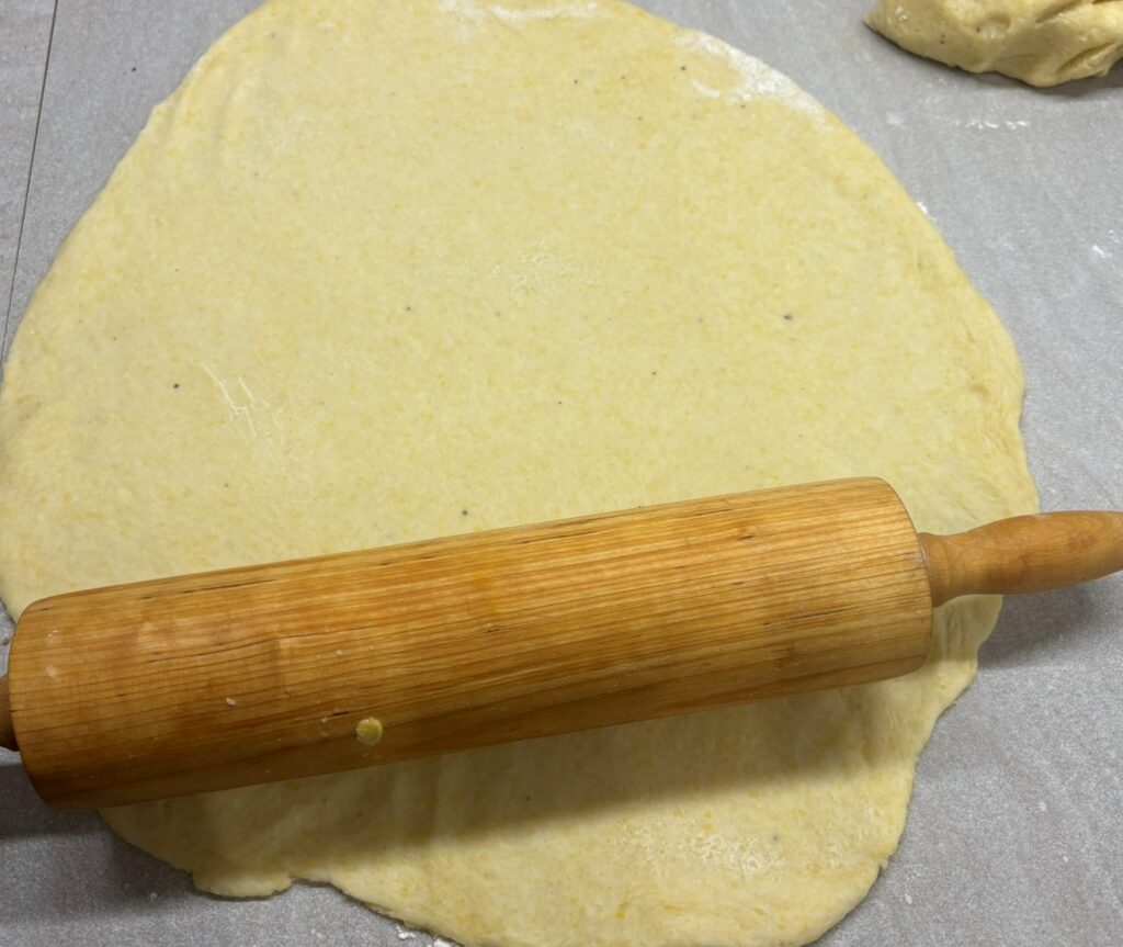 Riprendete la pasta e dividetela in due parti , una piu’ grande e una piu’ piccola.