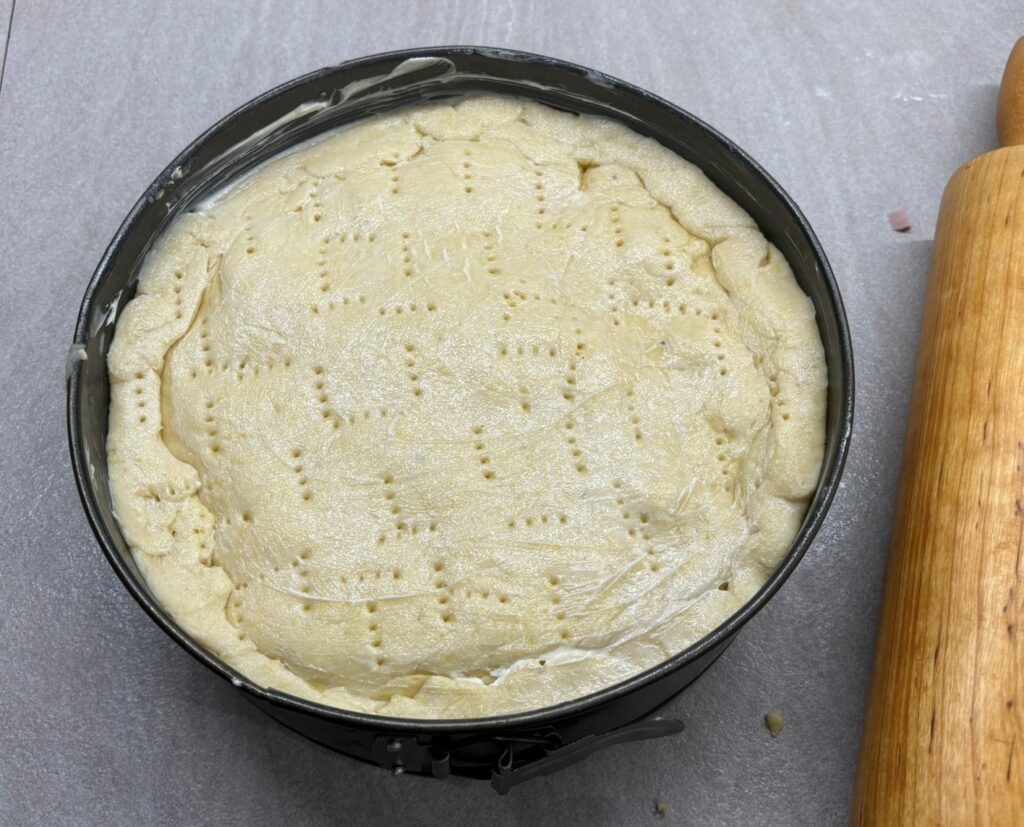 Stendete l’altra pasta dell’impasto e coprite il tutto.