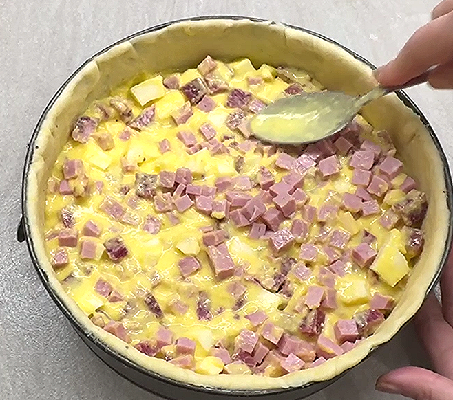Versate sopra la farcitura e livellatela con un cucchiaio.