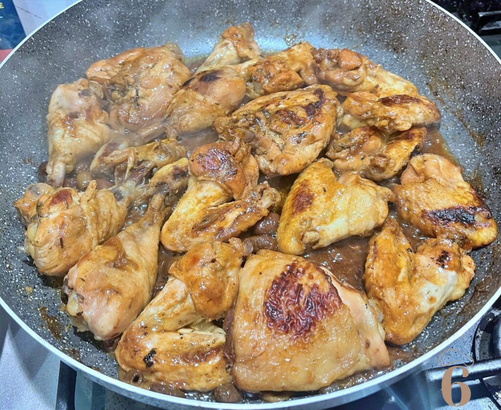 Mettete la carne in padella insieme al succo della marinatura e agli scalogni e lasciatela dorare per bene da una parte e l’altra.