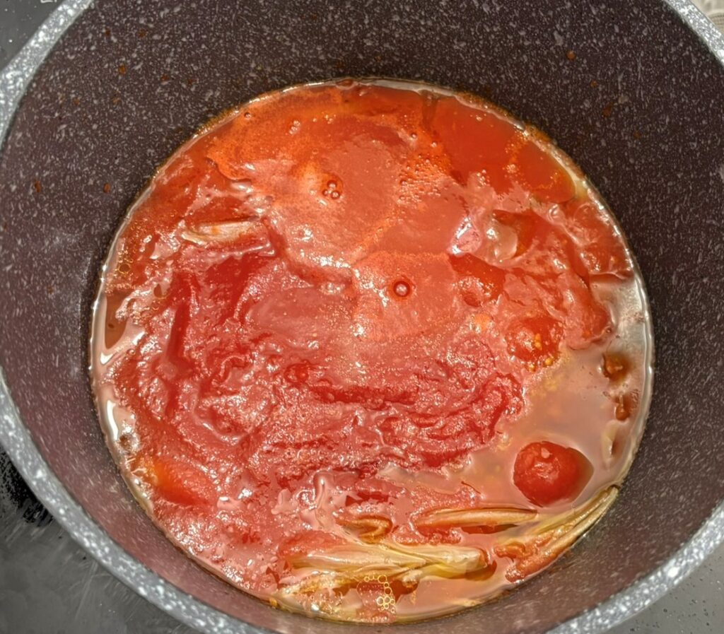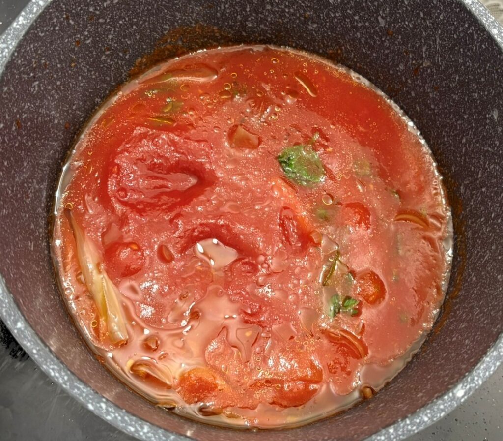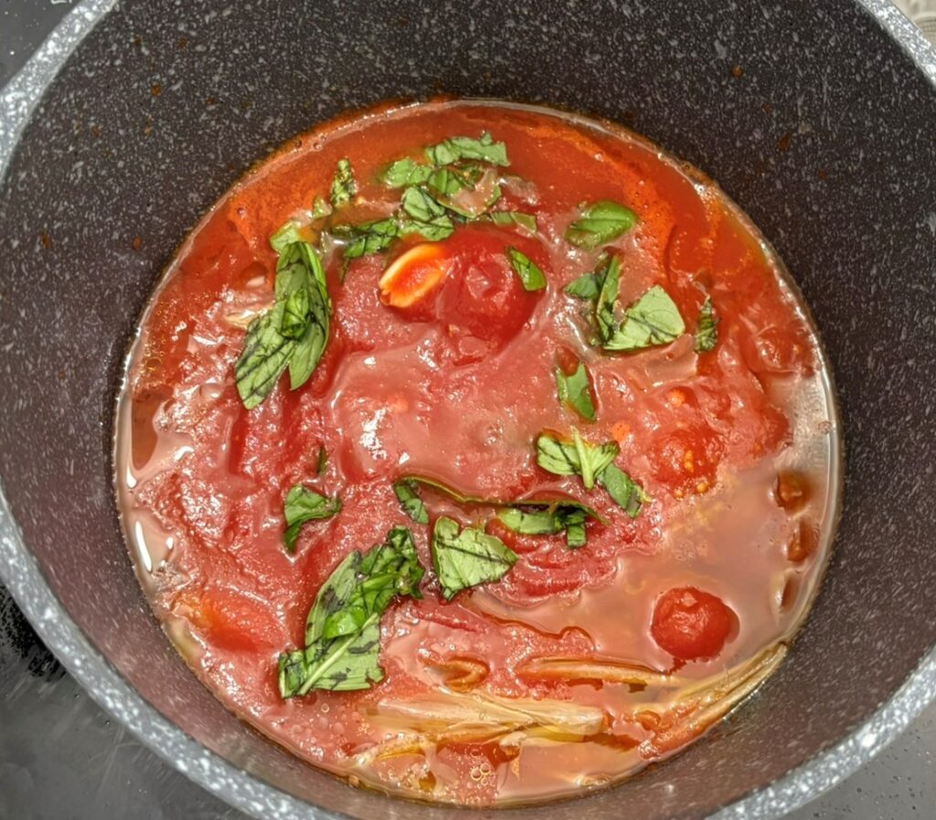 Unite il basilico a pezzetti e fate cuocere per circa 20 minuti controllando che il sugo non restringa troppo.