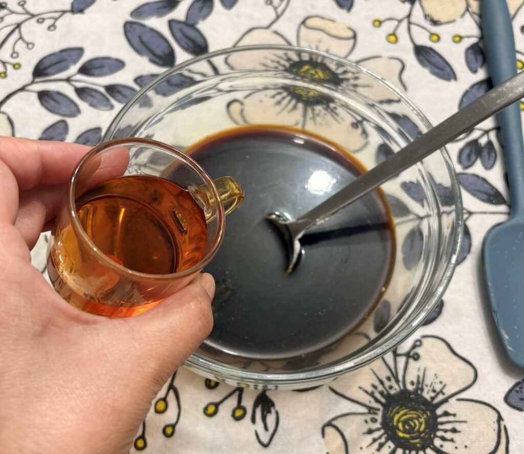 Versate il caffe’ in una ciotola capiente , aggiungete la tazzina di amaretto , 2 cucchiaini di zucchero e mescolate bene.