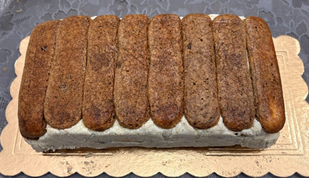 Un dessert delizioso, che unisce la morbidezza dei savoiardi inzuppati nel caffe’ e liquore alla croccantezza della frutta secca.