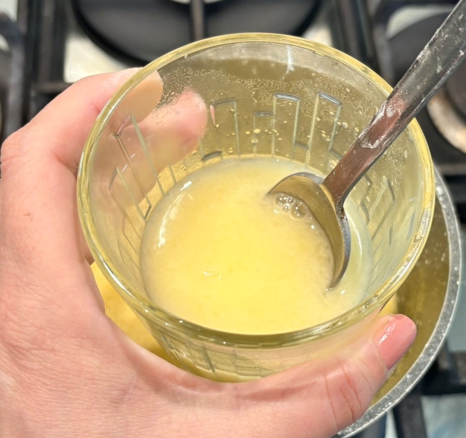 Sciogliete l’amido nel succo di limone e versate nel pentolino.