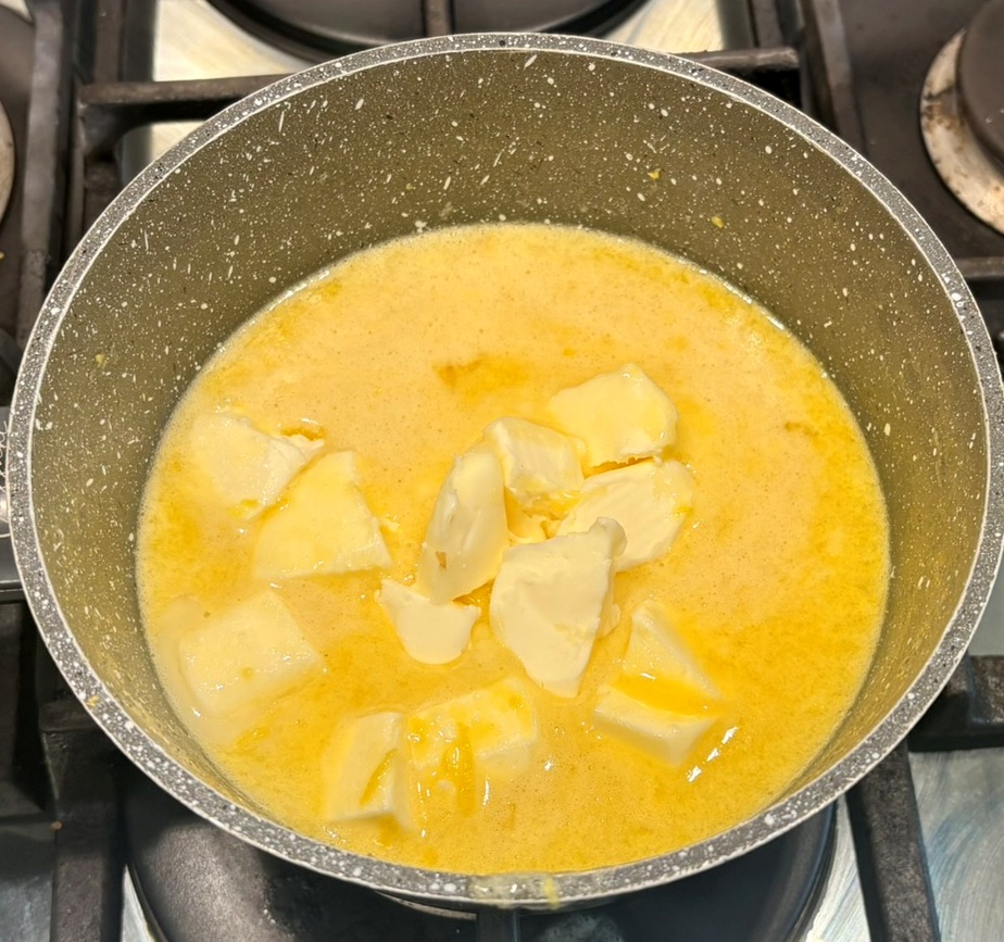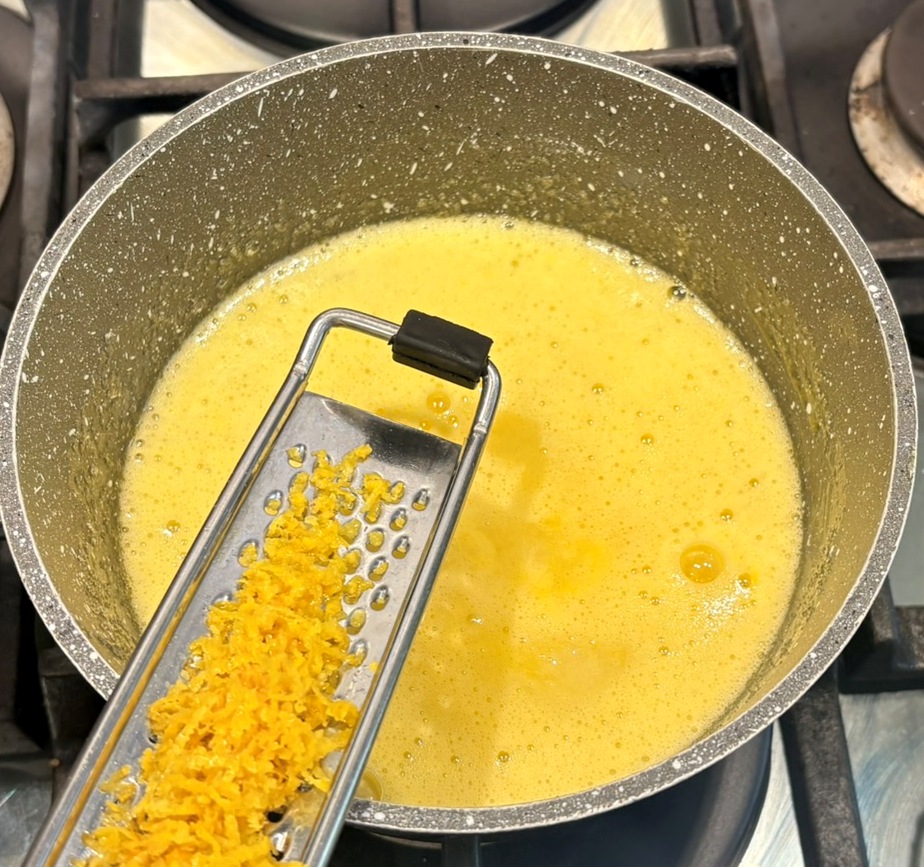 Mettete sul fuoco e aggiungete la scorza di limone e il burro a pezzetti.