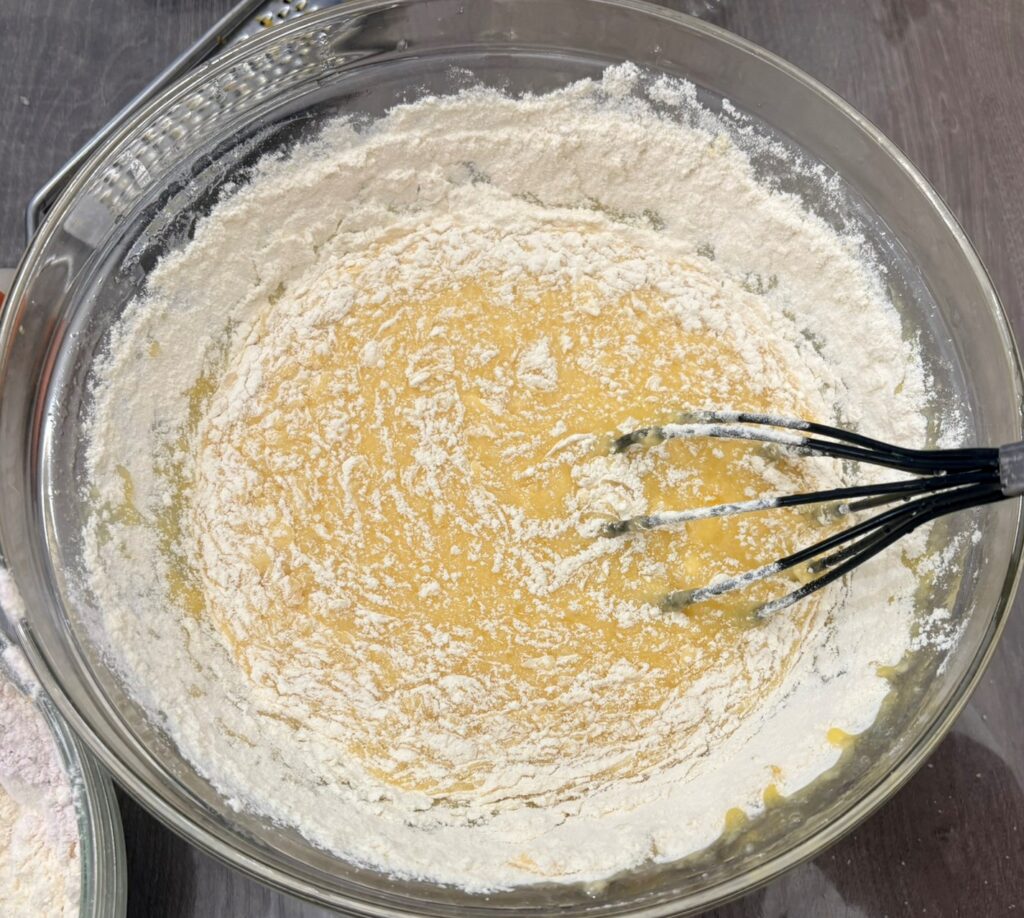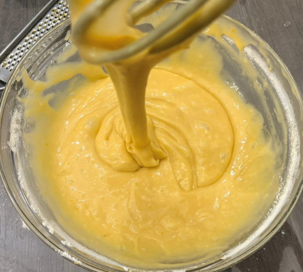Mescolate e unite la scorza di limone e delicatamente la farina e il lievito setacciati.