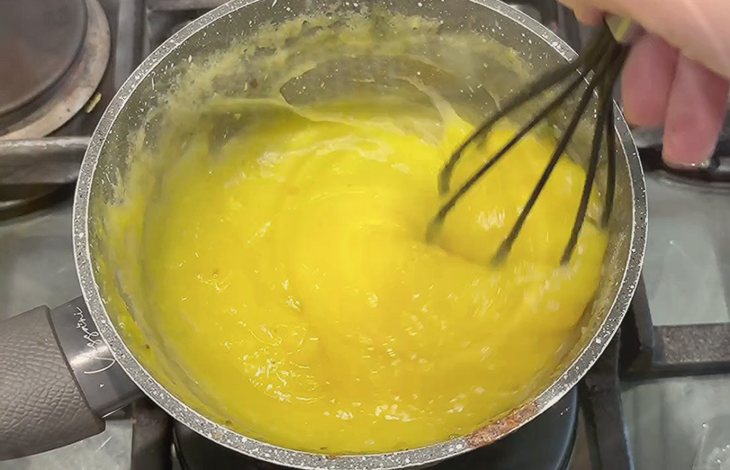 Continuate a mescolare finché il burro non si scioglie e la crema inizia a “sbuffare”