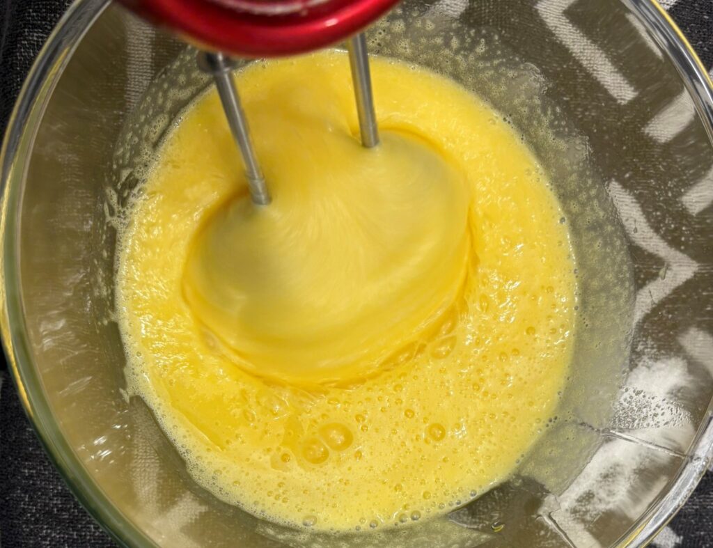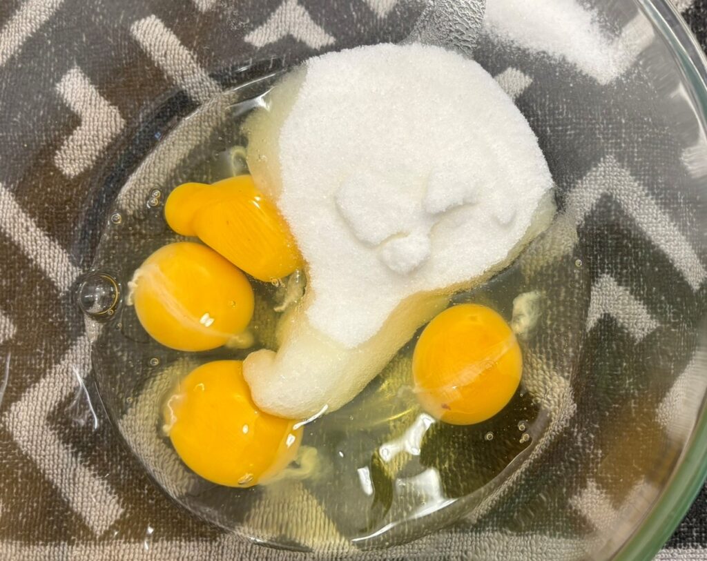 Montate con le fruste elettriche le uova con lo zucchero.